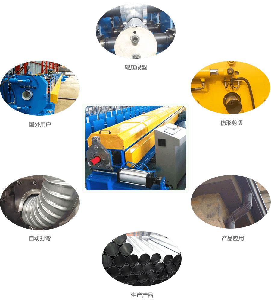 工藝流程: 開卷—導(dǎo)向進(jìn)料—輥壓成型—仿形剪切/潤滑鋸切—自動打彎