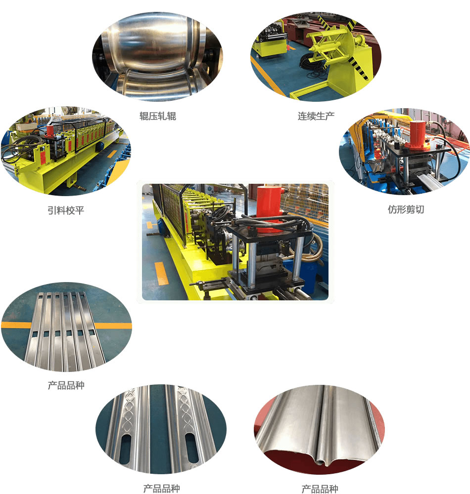工藝流程: 開卷—導向進料—平板沖孔—輥壓成型—仿形切斷—出料