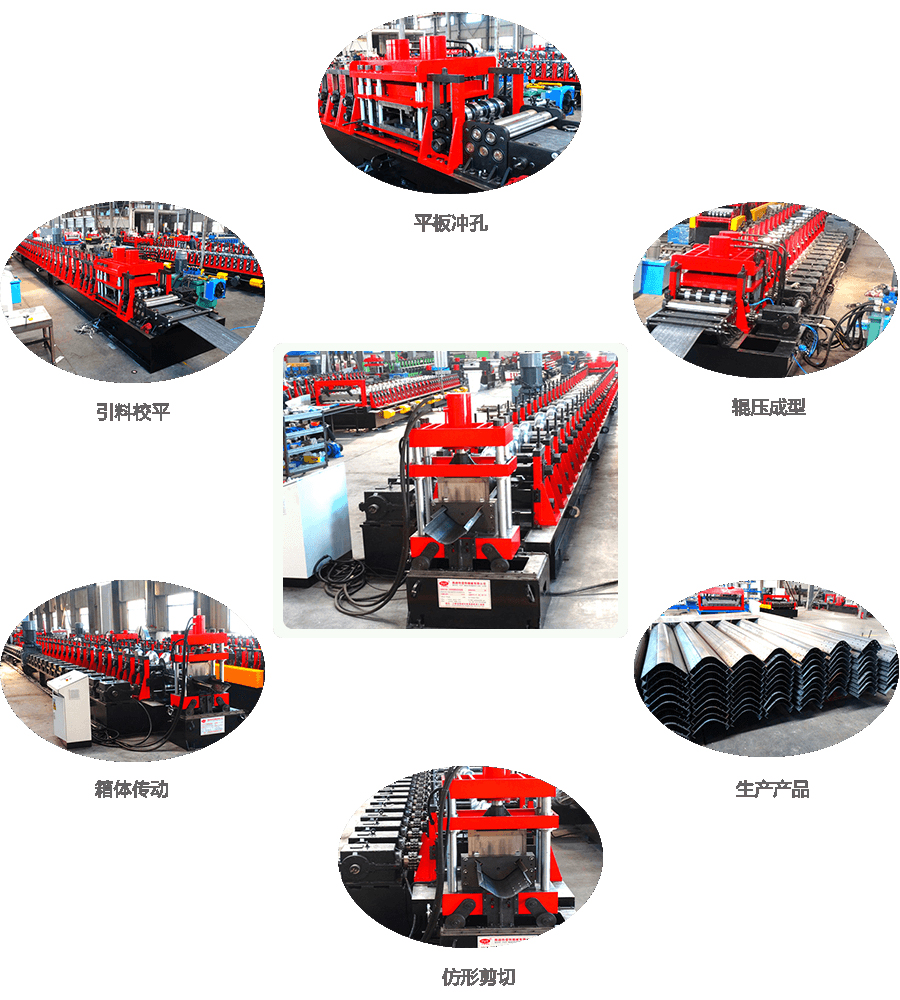 工藝流程: 被動(dòng)開(kāi)卷 → 導(dǎo)向進(jìn)料→ 平板沖孔→輥壓成型→仿型剪切 →出料臺(tái)